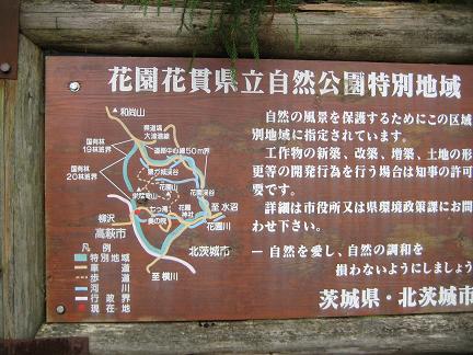 花園花貫県立自然公園特別地域と書いてある看板を見る。