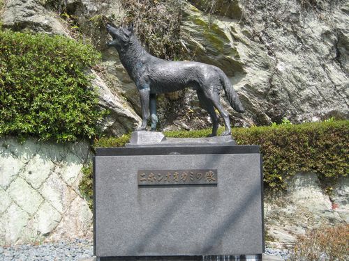 ニホンオオカミの像が途中にありましたよ。