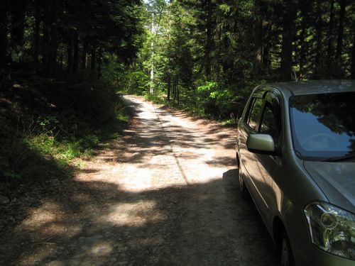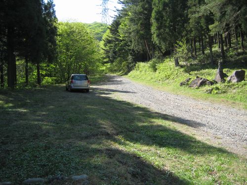 車の後方から林道を見るとこんな感じです。