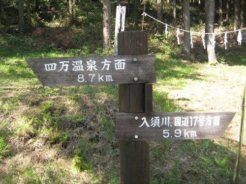 四万温泉と国道17号線への案内板がありました。