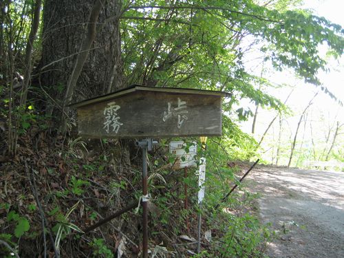 この支線分岐地点には霧峠と書かれた立札があります。