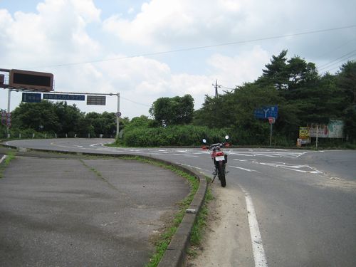 左に下りると、もはや自動車道とは思えない県道大塚真壁線。(2008/08/02の様子)